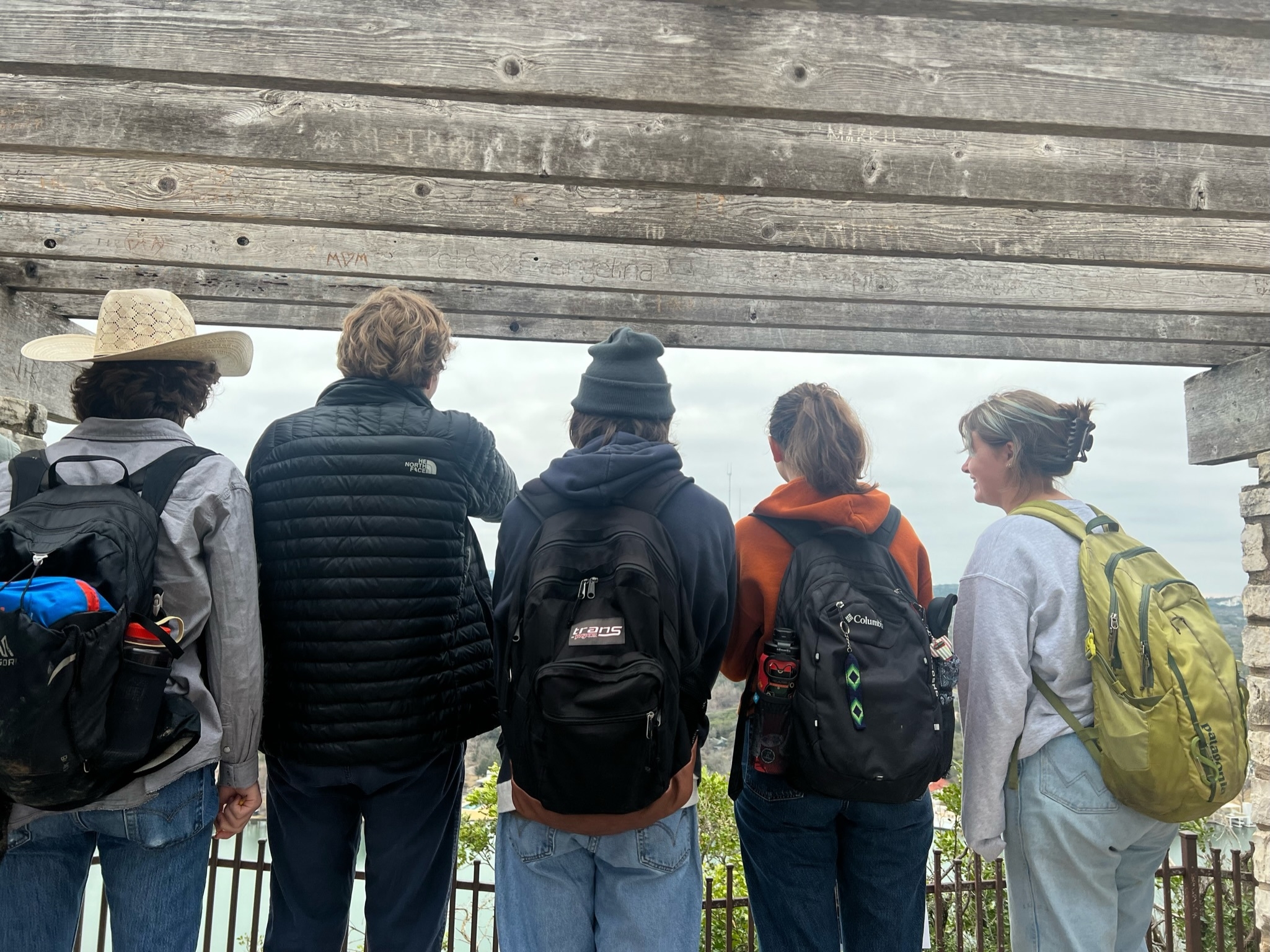 The class visited Mt. Bonnell to discuss Austin’s geologic history, and how it has changed and impacted its history of settlement, development of natural resources, and growth. To further understand Austin’s settlement history, Tasha Banks, the Assistant Director of Community Engagement and Health Equity in UT’s Dell Med Department of Population Health, gave an informative summary of Austin’s settlement history and how discrimination has affected it. She indicated how people of color now live in poorer areas with insufficient access to resources and healthcare. To close off, she gave the class recommendations on how to best interact respectfully and help those living in East Austin when the class studies environmental resilience in low-income areas. Dr. Banner explained Texas’s geology at the Balcones Fault Zone, where the western part of the Mount Bonnell Fault lies higher than the eastern part going out to the Gulf of Mexico. Millions of years ago, water and sediments were emptied out into the ancient coastline of Texas, causing the fault’s eastern side to sink under immense pressure. This difference in elevation and rock composition is still noticeable present day at Mount Bonnell.
