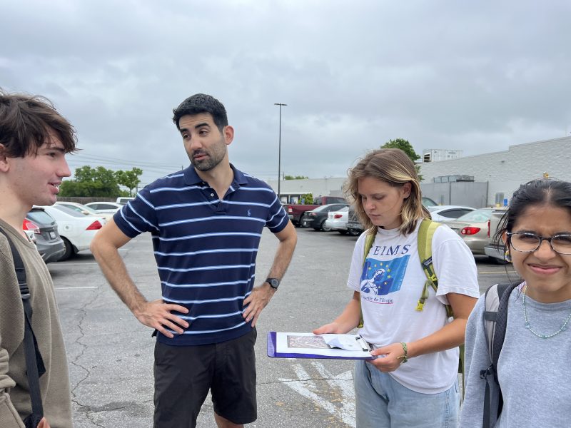Students received an informative lecture from Marc Coudert, the Climate Resilience and Adaptation Manager for the City of Austin. Coudert works to include climate change in conversations concerning urban planning in order to create resilient Austin planning. A project he is currently working on is the Heat Sensing Project — led by UT, Go Austin/Vamos Austin (GAVA), and the City of Austin — which seeks to observe where heat is concentrated most in urban areas due to a phenomenon known as the Urban Heat Island Effect. The Urban Heat Island Effect describes the concentration of heat in urban areas, such as cities, due to the increased amount of impervious cover. Impervious cover describes a surface that does not absorb water, such as cement. These surfaces absorb heat during the day and slowly release it at night, therefore slowing natural cooling processes and increasing the overall temperature of a city. This effect can cause certain heat-related illnesses in citizens, and as Coudert has observed, has a disproportionate impact on areas labeled heat-vulnerable. To fix this, Coudert has asked residents of heat vulnerable areas what they feel would help them cope with the intense heat in their areas — together, they decided that the issue of inadequate shade at bus stations would help residents in the area stay safe from heat exhaustion.